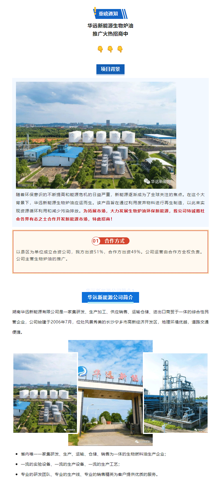 全面招商|加入我們,共同開發(fā)生物爐油市場(chǎng)!