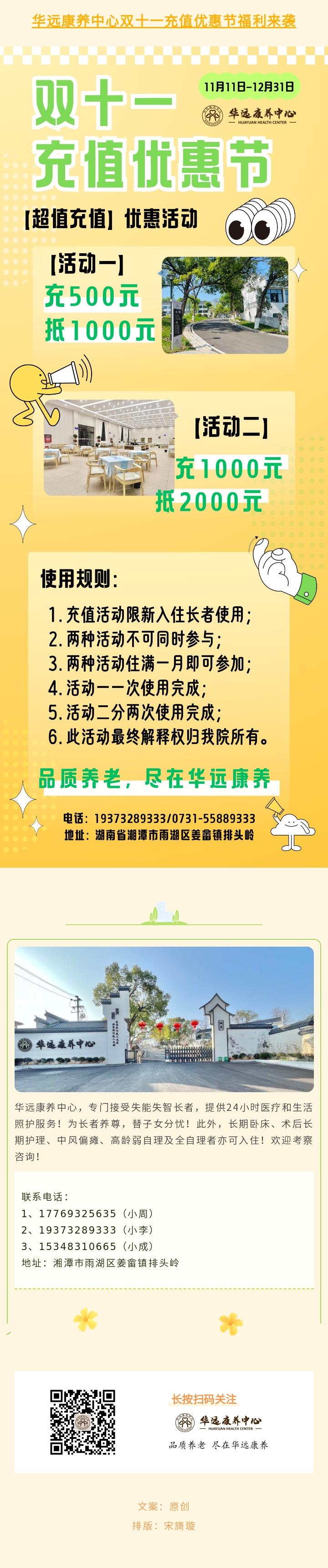 華遠康養(yǎng)中心雙十一充值優(yōu)惠節(jié)福利來襲